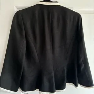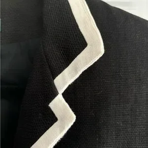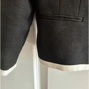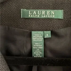 Linen Ralph Lauren Blazer, size 6. Black Linen, with cream colored linen trim. Fully lined. Front pockets, still stitched closed. Beautifully tailored, elegant, simple jacket. Excellent, nearly new condition. Shoulder to hem 21”, sleeve 19”, armpit to armpit 19”.