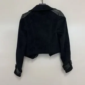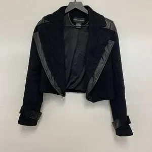 Christian Siriano Wool Leather Trim Black Biker Cropped Jacket Size 2