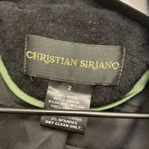 Elevate your style with this stunning Christian Siriano Wool Leather Trim Black Biker Cropped Jacket in size 2. The jacket features a sleek black color with leather lining and trim. The wool outer shell and insulation material provide warmth and comfort, making it perfect for colder weather. The biker style and theme add a touch of edginess to any outfit, making it a versatile piece for any occasion. This jacket is a must-have for any fashion-forward woman who wants to make a statement.