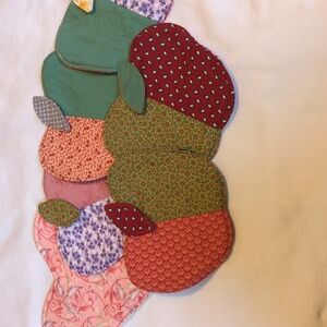 A set of 6 coasters fabric hand crafted apples and 1 heart.