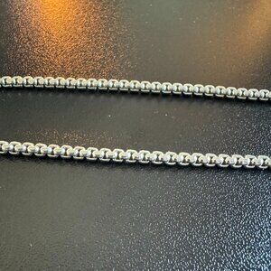 This is NOT a real David Yurman necklace but it looks almost identical to the real one. The box chain and details around the white/ faux diamond pendant. Beautiful piece that can be worn casually or dressed up. True statement piece of costume jewelry.