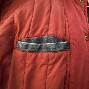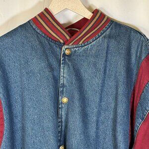 Yukon Trail Men's Vtg Denim Varsity Bomber Jean Jacket Striped Sleeves XL