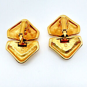 Vintage Swarovski Crystal Red Clear Door Knocker Earrings Gold Tone Glam 80s