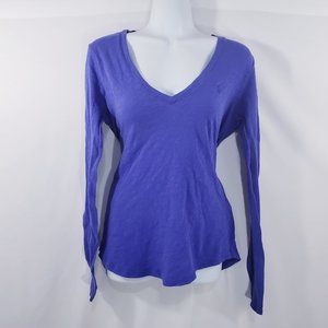 Ralph Lauren Sport Womens M Blue Long Sleeve V Neck Tee Knit Top Cotton Pony