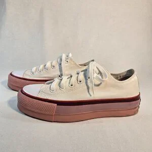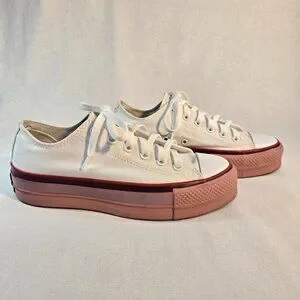 CONVERSE X O.P.I Chuck Taylor All Star Lift OX Plataforma White Rust Pink Women US Size 7.5 Canvas 566557C Limited Edition!