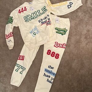 Mayfair brand new sweat set. Selling both the crewneck and the sweatpants. Both are M/L. Bought in the beginning of Oct. They are too big for me! Mayfair is only offering an exchange but does not have a smaller size