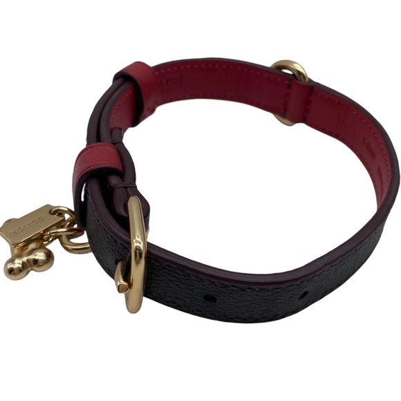 Coach Small Pet Collar Signature Canvas Brown Bold Red Leather Choker Designer