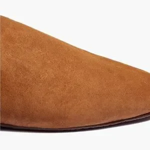 Slide-on mule design and made with buttery soft suede leather in rich colorways. A closed almond-shaped toe and open back are met with a shaggy 100% shearling insole and rubber outsole.