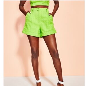 NWOT ROYALTY Women's Tweed shorts Fully lined thick fabric by Maluma Size 2 Lime Green