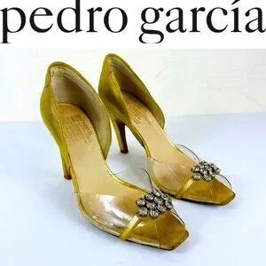 PEDRO GARCIA Retro Gold Metallic Jewel Glitter Peep Toe D'Orsay Heels Shoes 7.5