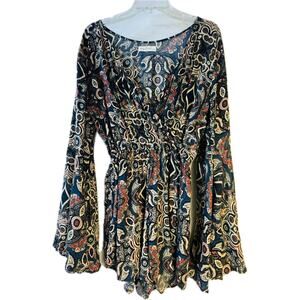 Abercrombie & Fitch Romper Women L 100% Viscose V-Neck Bell Sleeve Boho Blue