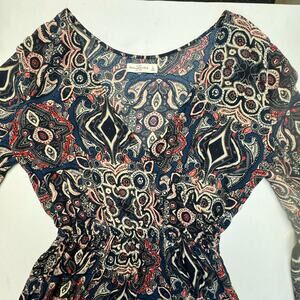 Abercrombie & Fitch Romper Women Size L 100% Viscose V-Neck Boho Blue Print