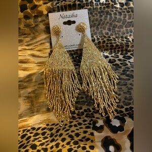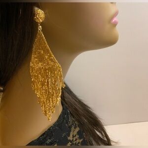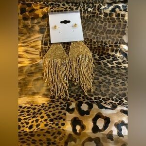 NWOT Earrings. Beautiful Gold Bead Dangle Earrings. Approximately 5” length, for pierced ears. No trades. Smoke free and pet free environment. Thank you!