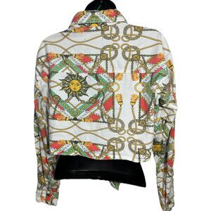 MissGuided womans sz 6 cotton Cropped White Denim Jean Tie Jacket Sun Chain