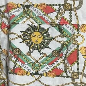 Elevate your wardrobe with this trendy MissGuided cotton denim jacket. The short length and long sleeves make it perfect for any occasion, whether it be a night out or a casual day out. Featuring a solid white color with a sun, chain, and tassel design, with a chic tie and button closure, this jacket adds a touch of sophistication to any outfit.