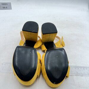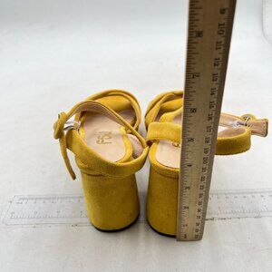 FSJ Yellow Peep Toe Chunky High Heels Platform Sandals Ankle Strap Suede Shoes