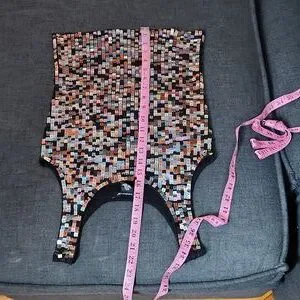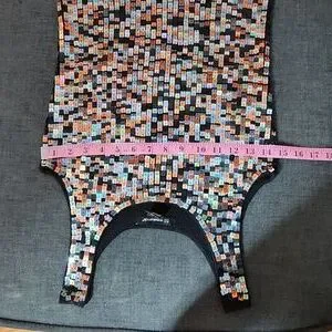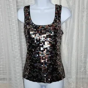 Black Y2K Sequined Scoop Neck Sleeveless Tank Top SzL