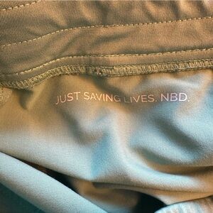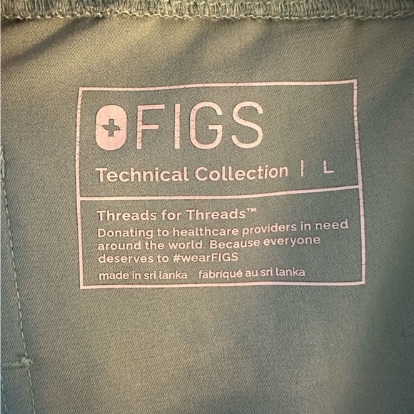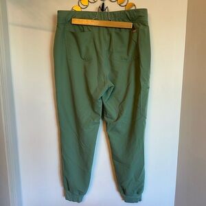 FIGS Technical Collection scrub pants. Jogger style in women’s size large. Green colour with neon orange tie at the waist.