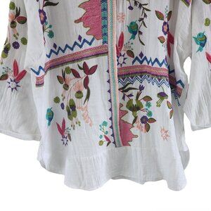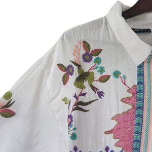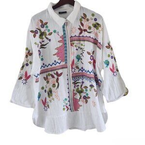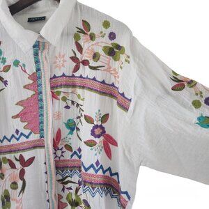 AP.NY New York Embroidered Floral Birds Embroidery Button Front Blouse Top XL