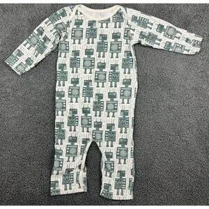 Winter Water Factory One Piece Long Outfit Romper 18m 18 Green Robot USA Organic