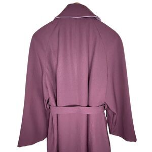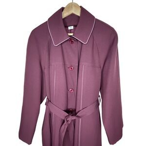 Red Purple Maroon Wool Lined Long Peacoat Button Front Belted Waist 70s