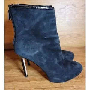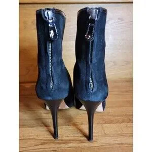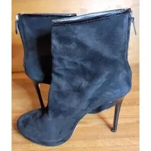 Beautiful black suede booties. The uppers on these boots are in great condition. There is some heel and sole wear.