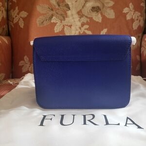 FURLA Leather Blue Metropolis Chain Crossbody Bag NEW