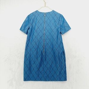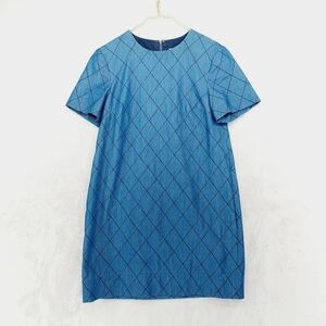 Kate Spade Blue Quilted Chambray Back Zipper Short Sleeve Shift Dress P1009