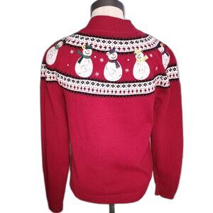 Christopher & Banks Red Zipper Embroidered Snowman Sweater Size M