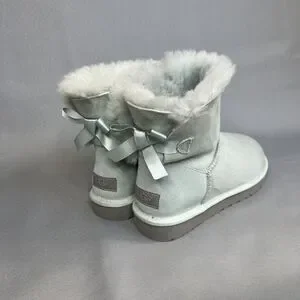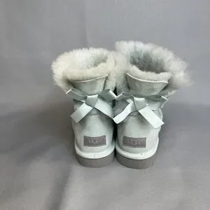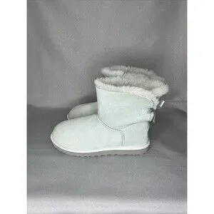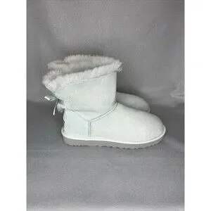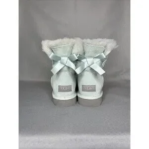 Womens Ugg Boots Sz 8 Ice Blue Bailey Bow Mini Suede Sherpa Coquette Festival