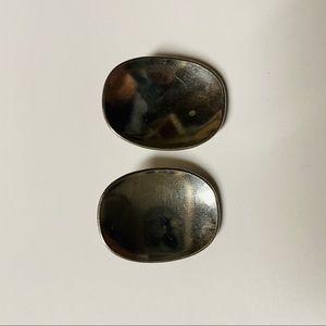 Vintage shiny silver tone oval clip-on earrings. In great condition, some small scratches as pictured. From a smoke free pet friendly home.