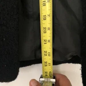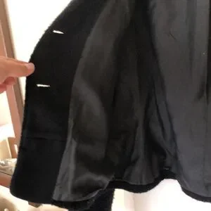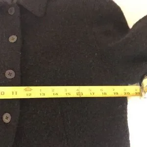 The best staple for any time of year ! Black , button down, boucle jacket fully lined with a slight peplum at the bottom to make it even cuter! Slight stretch in this mostly wool blend. Very classy and cozy.