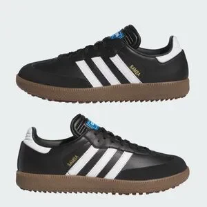 Everyday style for the course. The celebrated adidas Samba comes to golf. Made for social rounds and casual days on the course, the Samba Golf shoes combine heritage football style with course-ready details. The spikeless outsole and cushioned midsole complement a synthetic upper and set you up to roll from your final putt to the clubhouse and beyond without looking like you just stepped off the course.