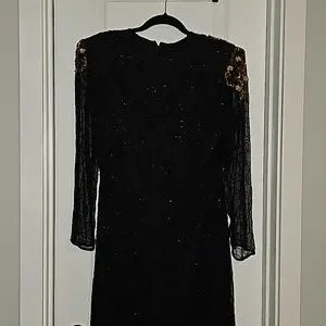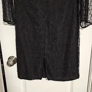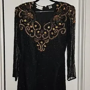 Laurence Kazar Womens Dress Vtg Sz S Beaded Black Silk Evening Zipper VG…