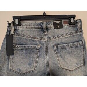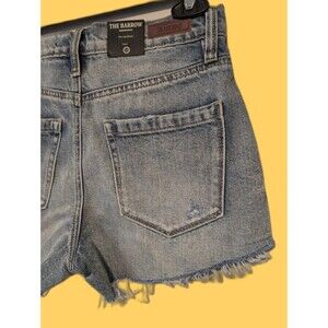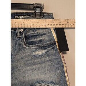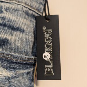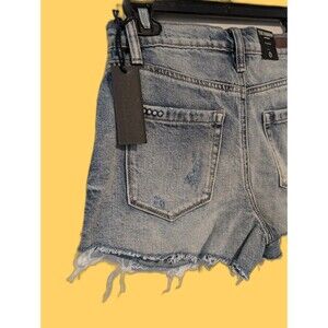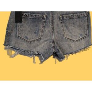 Elevate your summer wardrobe with these NWT Blank NYC The Barrow Distressed Denim Shorts. The shorts feature a button closure and a 5-pocket design with a flat front. The distressed denim and side stripes provide a stylish and modern look, perfect for any occasion, whether it's a casual day out or a party.