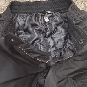 Like new. Snow pants. Lined. Gathered at ankles. Zip and snap closure. Cargo pocket on front.