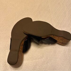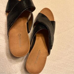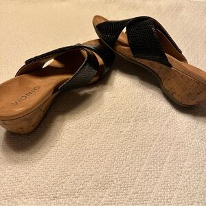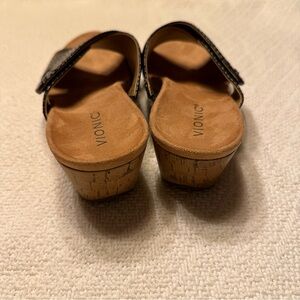 Black comfy Vionic slip on wedge sandals adjustable Velcro strap great condition size 10