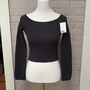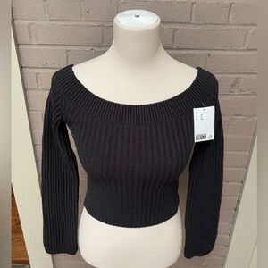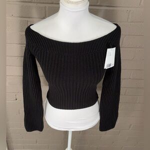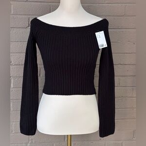 Black ribbed cropped sweater with an off shoulder style , new !!