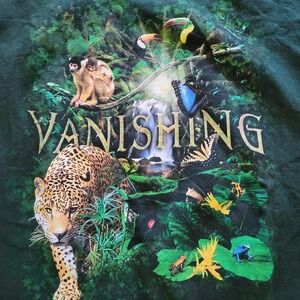 Hanes Beefy tag size medium womens shirt. Save the rainforest graphic with vanishing/extinct animal graphic, crew neck, short sleeve. In excellent preowned condition.