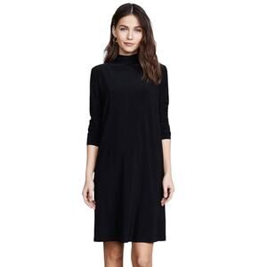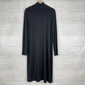 Norma Kamali Black Long Sleeves Midi Swing Dress XL Turtleneck Zip Neck Modest