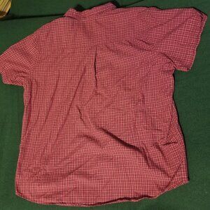 Beautiful! Cherokee brand red and white plaid short sleeve button down shirt. Has a pocket, and I think the top button was resewn. Tag with fabric content was removed for comfort.