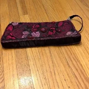 Stunning plum color embroidered beaded detachable strap clutch style hand bag. No major sign of wear, beads intact, very minor fraying in embroidery. Unique and stylish.