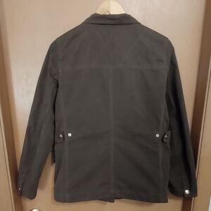 *No additional discount!* Made for LLBean, this is from their Signature Collection. The classic look of a field jacket, only better with a softer feel and stylish details. Quilted detail at shoulders and back yoke. Adjustable side tabs provide great shape. Four front flap and two side pockets. Softly shapes the body. Falls at hip. Very well made, see all pictures for the wonderful details of this jacket. The snaps are brass colored. The zipper is a two way so it can be zipped up from the bottom for comfort when sitting. Size is medium measures 20" across from armpit to armpit. Length from the shoulder is 26". Material is 46% cotton, 36% polyester and 18% nylon. Previously gently worn and freshly washed. From a smoke free home.