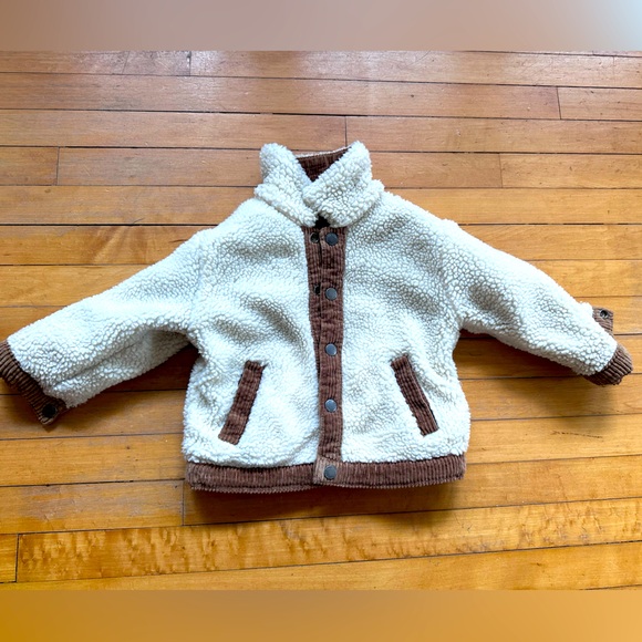 Zara Reversible Courdoroy/ faux Sherpa Fleeve Jacket with snap buttons