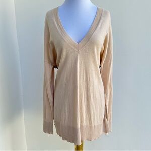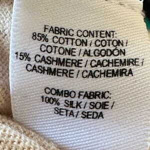 Beautiful Cashmere Cotton Sweater. So light weight comfy n cozy. Worn once, In overall good condition. You’ll love the design and fit. Perfect with cream colored pants and loafers or jeans n boots.