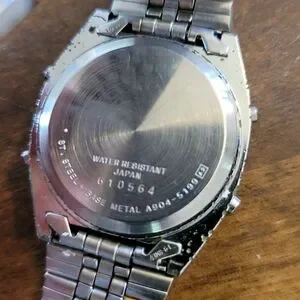 Cool 80's Vintage Seiko Digital Watch in good vintage condition. Stainless Steel watch features Original Bracelet, Alarm, Hourly Time Signal and Auto Calendar, working light. Appears to have all or most of the links, so it should be able to fit most wrists.