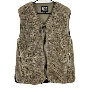 BDG Urban Outfitters Medium Borg Sherpa Vest Brown Zip Pockets Sleeveless Cozy