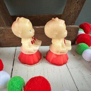 Set of two vintage mid century singing choir boy candles. Both appear to be unused. They are unscented, fully wax. 3" tall and 2" wide. One of the candles has some paint loss.
