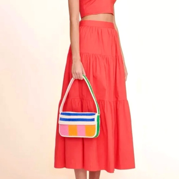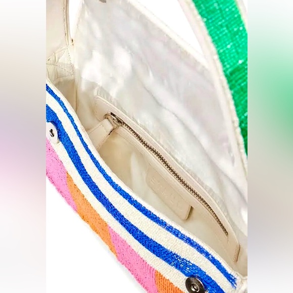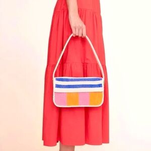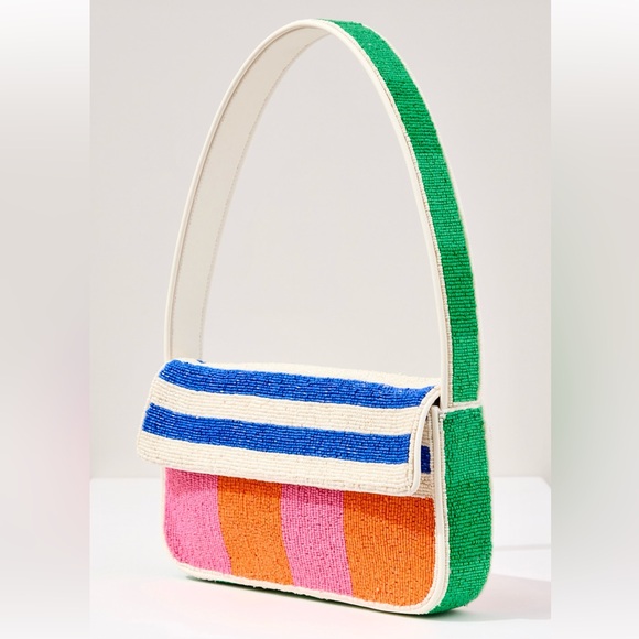 🌺 A beloved Staud icon no longer made or sold 🌺 The iconic Staud Tommy Shoulder Bag is a gorgeous showstopper in Multi Rugby Stripe, featuring bright multicolor stripes on a white background & an allover hand-beaded design. Elegant, vibrant & strikingly beautiful, it is destined to become your favorite bag for all occasions. With a beaded shoulder strap, flap top with dual magnetic closure, inside zipper pocket, interior satin lining, magnetic-fastening back slip pocket & 100% vegan leather trim. A new Staud dust bag is included with the purchase. 10” wide x 6” high x 2.4” deep, with an 8” strap drop. Extremely rare & hard to find, sold out everywhere. Brand new, perfect condition. NWOT 🌷