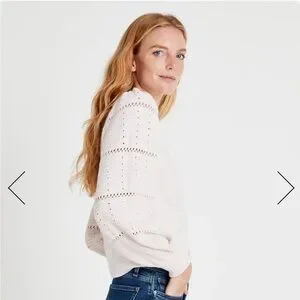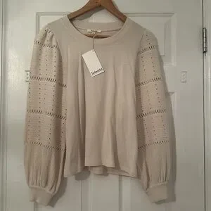 -NWT Splendid Liliana cream/ off white Crewneck long-sleeve Sweater. Body of sweater is cotton, with knit sleeves.